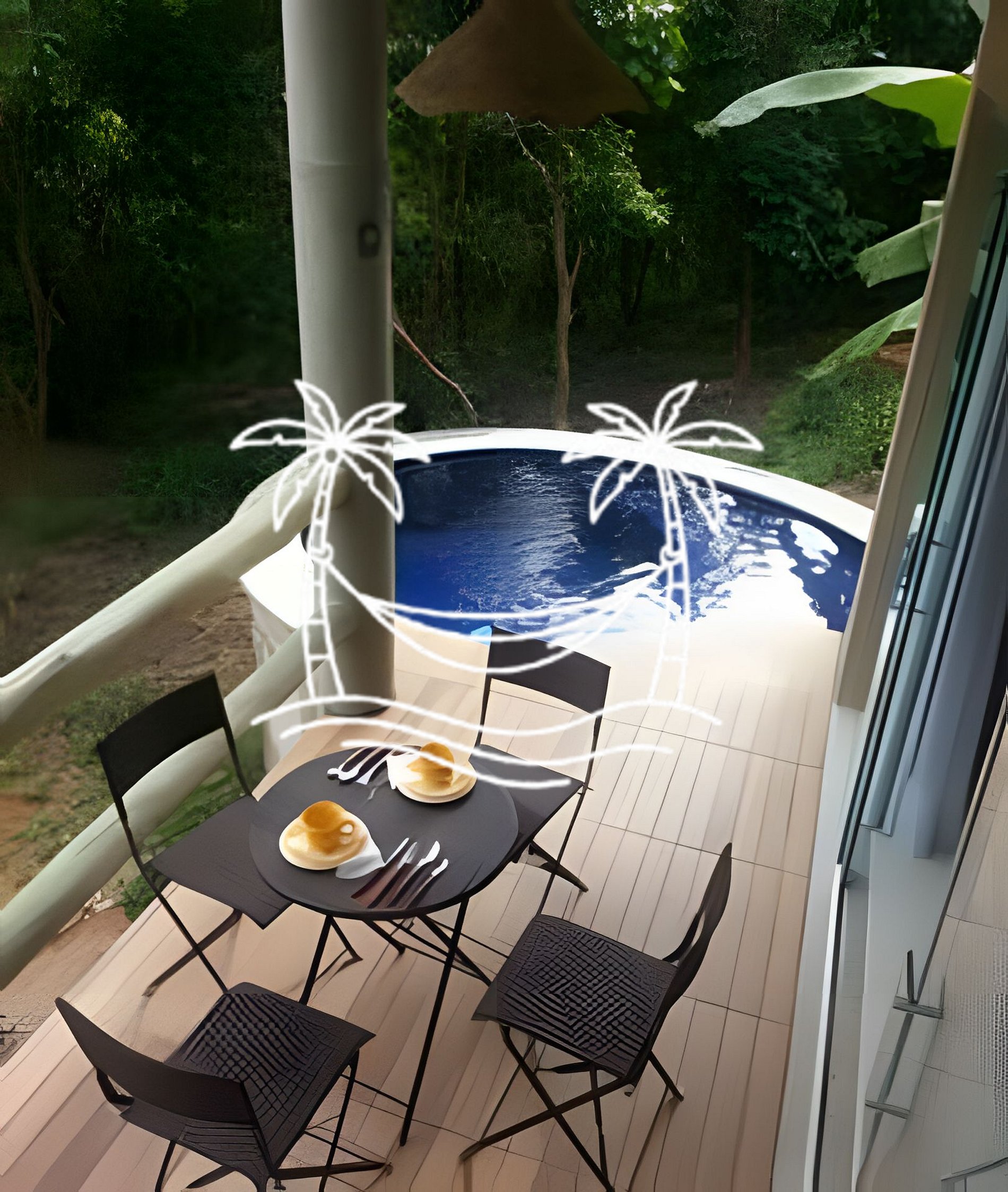 Com uma área privativa de 47 m², o Bangalô Super Luxo (Vime D3) foi projetado com uma planta inteligente de estúdio, otimizada para acomodar confortavelmente até 4 hóspedes em um único ambiente. No espaço, há uma confortável cama queen size e um sofá-cama. Para seu total conforto, o bangalô é climatizado e dispõe de Smart TV e Wi-Fi de alta velocidade. A cozinha é equipada com cooktop, micro-ondas, geladeira, sanduicheira, liquidificador e utensílios, garantindo a liberdade para preparar suas refeições favoritas. A área externa com a jacuzzi privativa aquecida é o ponto alto, um convite irrecusável para relaxar e aproveitar o ambiente.